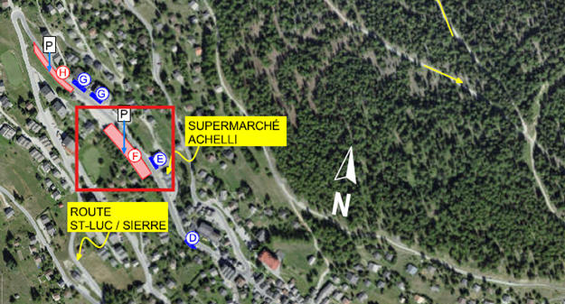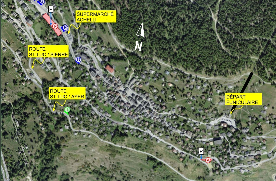 • Parking F sur le plan des parkings de St-Luc (face au supermarché Achelli)