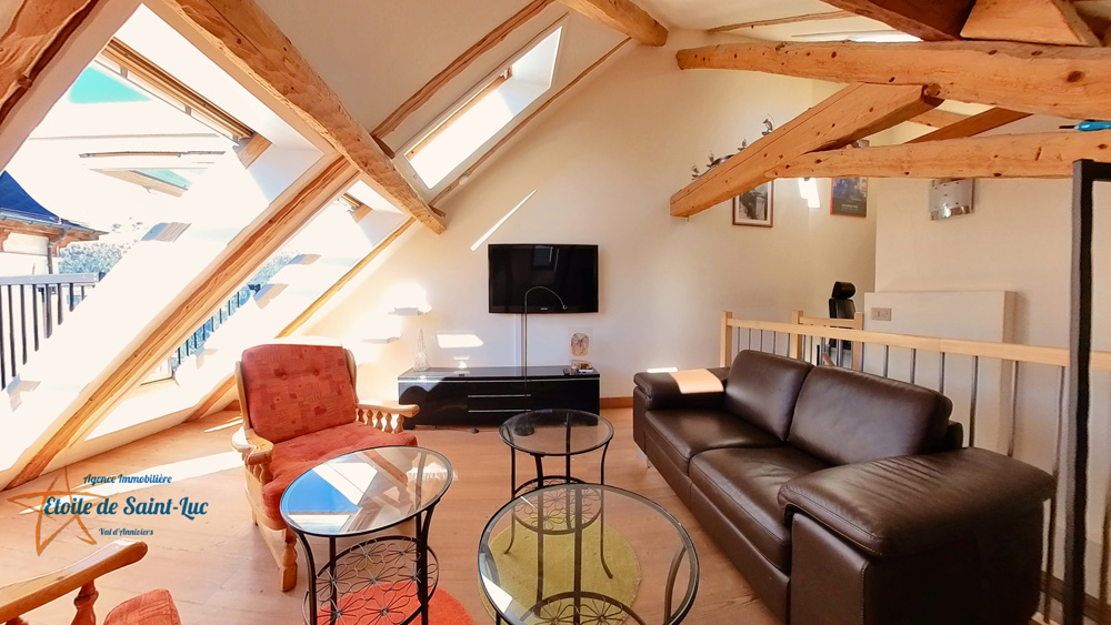 Idéalement situé au centre de Saint-Luc, ce charmant appartement en duplex bénéficie d’un emplacement privilégié, à proximité immédiate de la boulangerie Salamin, de l’arrêt navette, et à 5 minutes à pied du funiculaire. Un bien rare alliant volume, confort et accessibilité, idéal pour les amoureux de la montagne hiver comme été.