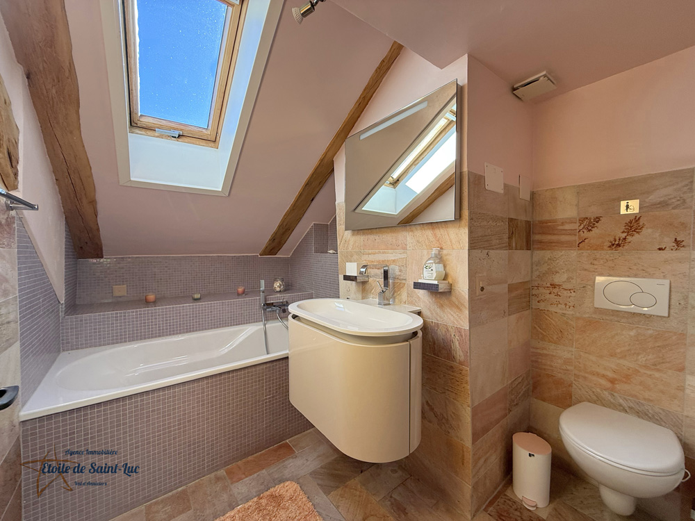 1 salle de bain avec baignoire et lavabo à l’étage